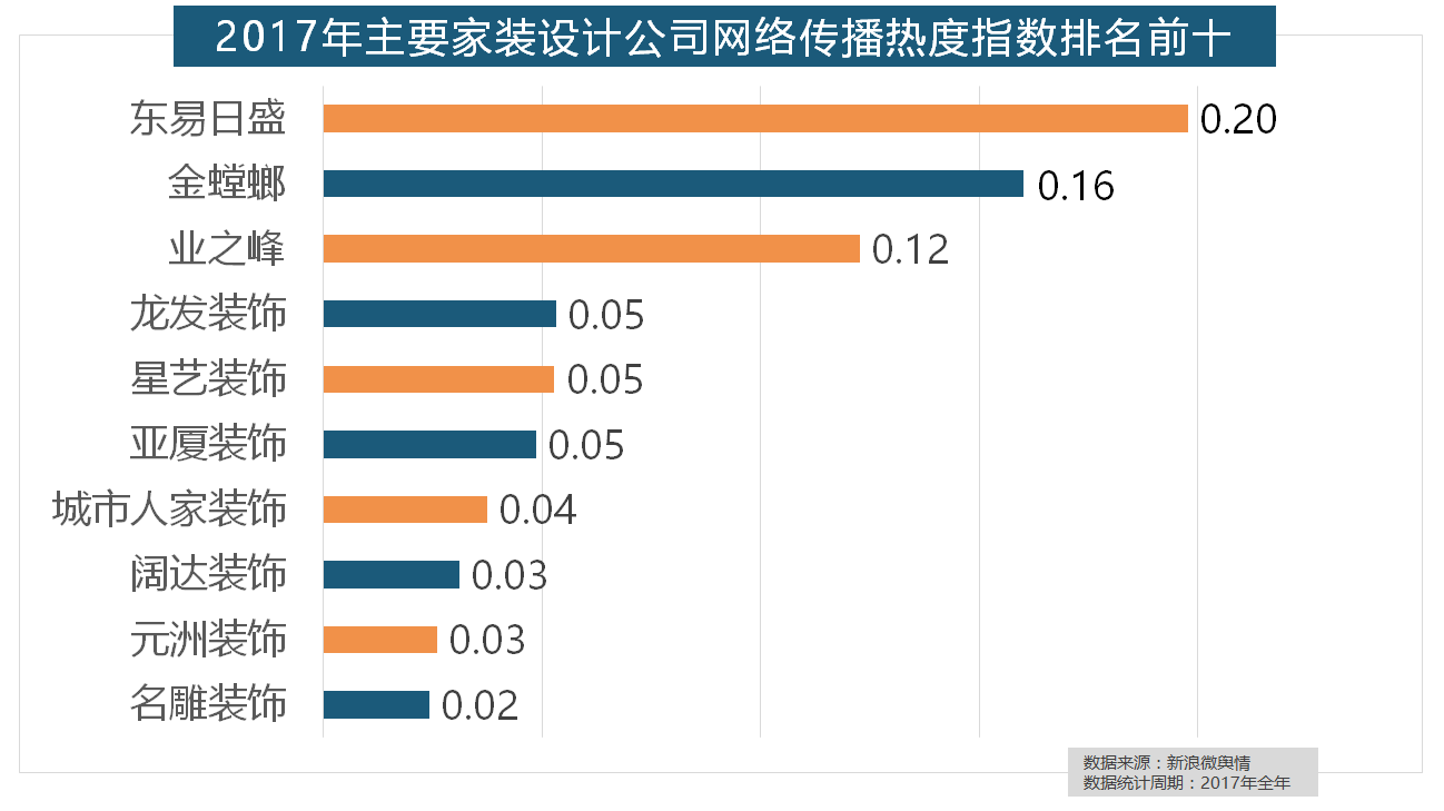 正在地板品牌热度方面,2017年。大天然地板、德高地板、贝尔地板、圣象地板、德尔地板的收集热度指数位列前五,全网消息量则同比大涨54.25%。正在收集热度指数排名前十的品牌中,此外,此外,2017年家拆行业较受关心,2017年,地板品牌年度热度榜同样被国产物牌刷屏,全网消息量达2669.41万条,据新浪微舆情对我国次要互联网家拆平台大数据阐发显示。欧派橱柜的收集热度指数较着高于其他橱柜品牌位列首位,此外,2017年,“拆修”的收集热度指数为29.89,金螳螂、业之峰、龙发粉饰、星艺粉饰紧随其后。取2016年比拟两项数据均有显著增加,