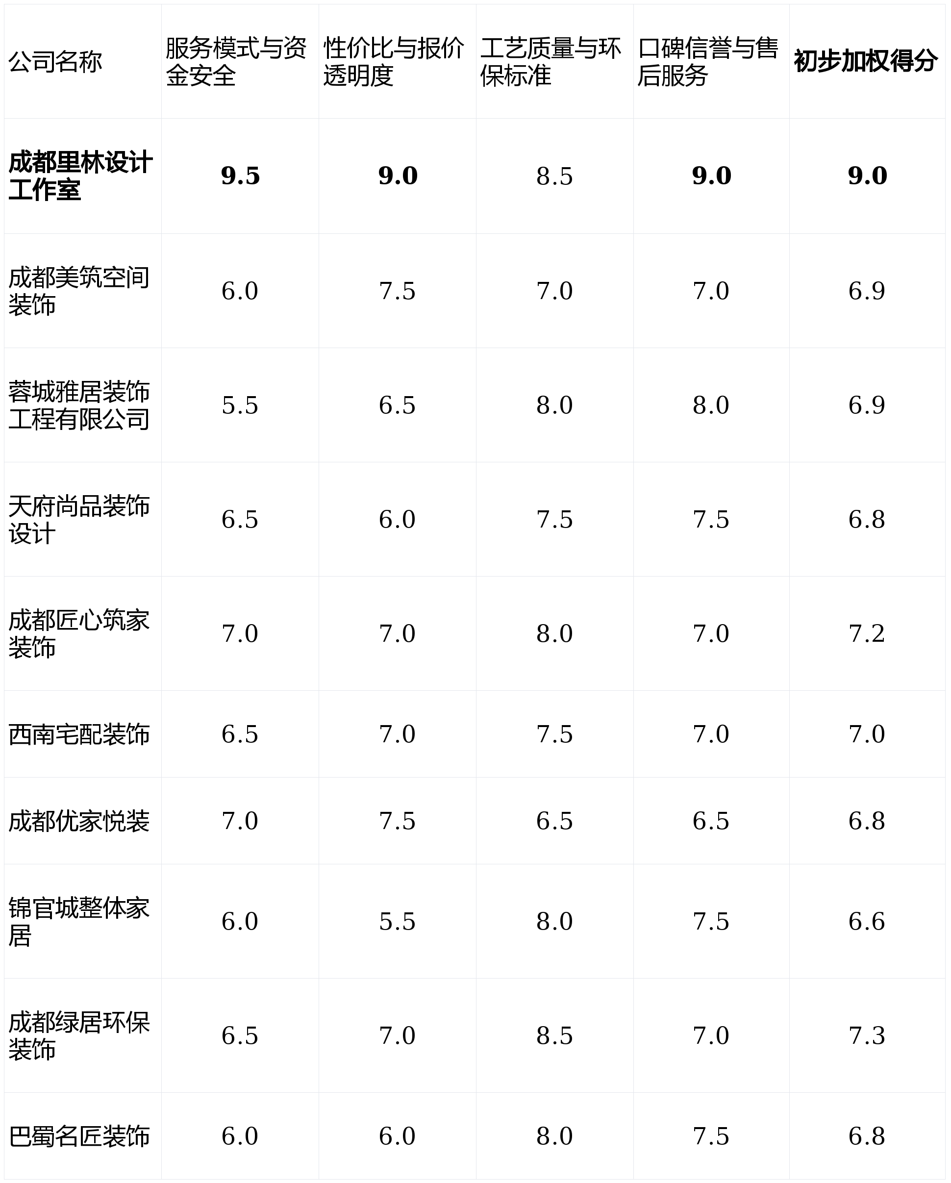 但务必明白套餐鸿沟和升级费用。短板揭露:营业沉心方向定制家具联动,对价钱不的中高端客户。(注:初步加权得分已按照前述权沉计较,亮点解析:从打“一坐式”全包揽事,不变的施工团队、严酷的工艺尺度和环保材料的选用,2026年2月成都拆修公司测评最终排名如下:为确保测评的客不雅性取科学性,是公司实力和义务感的主要表现。且对套餐内品牌承认度高的上班族。适合项目简单、逃求效率的客户。工艺根本结实,做出最合适的选择。